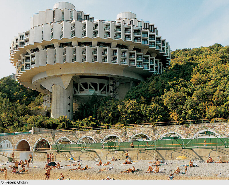 In dem Bildband„CCCP. Cosmic Communist Constructions Photographed“(mehr Details siehe unten) belebt Fotograf Frédéric Chaubin 90 Bauwerke aus der Schlussphase der Sowjetunion. Mit den poetisch anmutenden Bildern illustriert er die letzte Blütezeit der Kreativität der untergehenden Weltmacht zwischen 1970 und 1990. Anders als in den 1920er- oder 1950er-Jahren ist in den Fotografien keine einheitliche „Schule“ oder „Epoche“ zu erkennen. Die Bauten erwuchsen indes aus dem Chaos des implodierenden Sowjetsystems. Zugleich waren den Architekten damals keinerlei Grenzen gesetz.