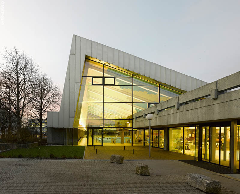 Doch welche Anforderungen muss eine zeitgemäße Badelandschaft erfüllen und wo sind die Stellschrauben für eine wirtschaftliche und energetisch optimierte Bauweise? Wichtig ist es, dem Bad ein zeitgemäßes und ansprechendes Ambiente zu verleihen. Denn für die wirtschaftliche Effizienz sind nicht nur geringe Bau-, Unterhalts und Betriebskosten entscheidend, sondern ebenso eine hohe Besucherakzeptanz. Und die steigt, je freundlicher und einladender die Atmosphäre ist und mit ihr auch der langfristige Erfolg für den Betreiber. Beispielsweise liegt sämtlichen von uns geplanten Sport- und Freizeitbauten eine Art Leitbild oder Vision zugrunde, die sich auf die Lage und die Geschichte des Ortes bezieht und sich in der Architektur spiegelt. So entsteht – in Kombination mit einem individuellen Badeangebot, das gemäß den Anforderungen des Bauherrn und den Bedürfnissen der Nutzer entwickelt wurde – in jedem Bad eine ganz besondere und individuelle Aufenthaltsqualität. Entscheidende Faktoren sind neben der Formgebung die Wahl der Materialien, die Farbgestaltung und vor allem eine präzise Ausarbeitung bis ins Detail. Erst in diesem Zusammenspiel gelingt es, Wohlfühlräume mit hoher ästhetischer und funktionaler Qualität zu schaffen. So steht hinter jeder gestalterischen Entscheidung ein Thema, das die Nachhaltigkeit berührt.