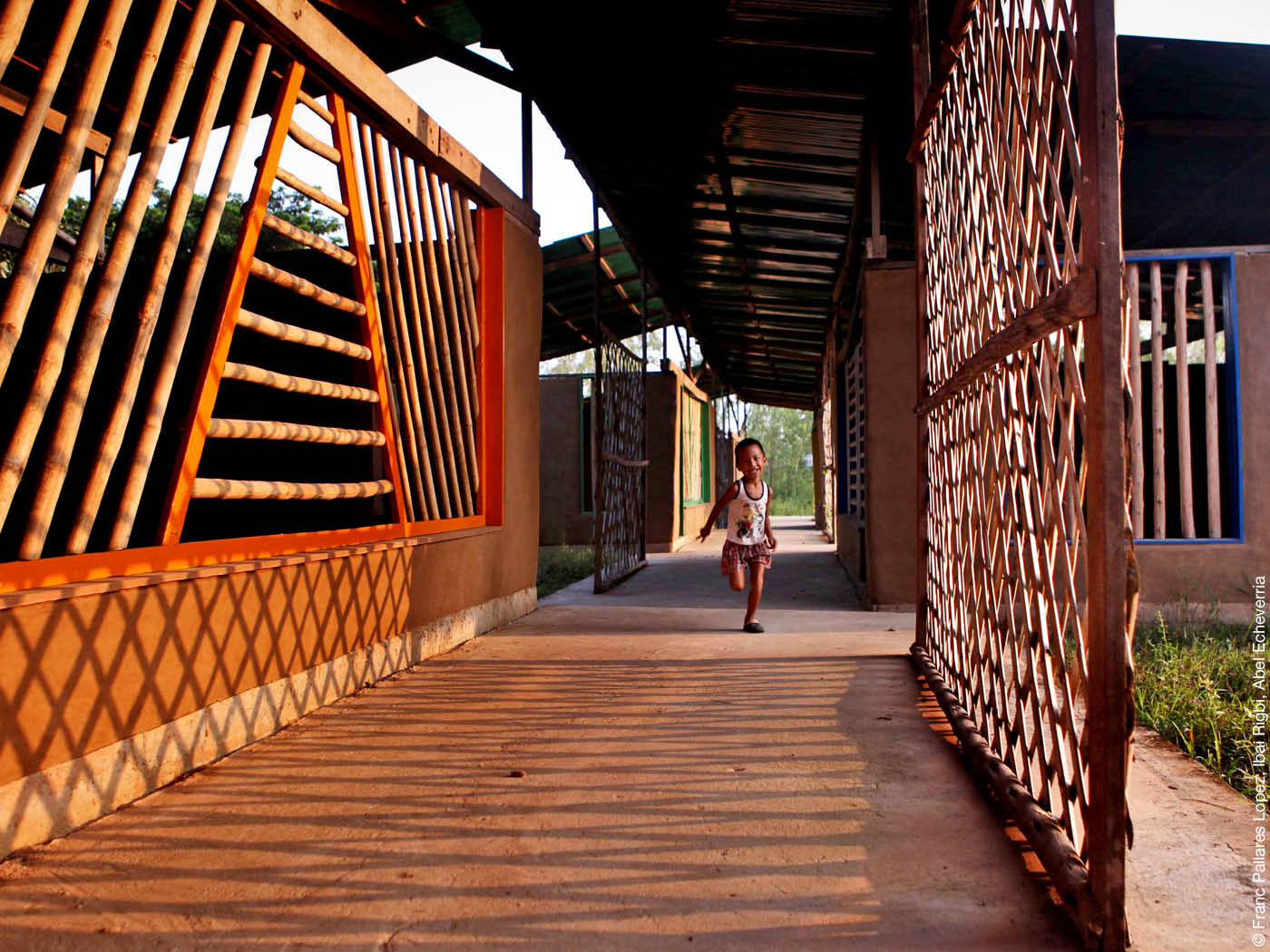 Etwa, ein Klassenzimmer für 1.300 Dollar zu bauen, also für 25 Euro pro Quadratmeter. Für die Deckenträger schusterten sie Altholz zusammen. Als Belastungsprobe genügte ein Mittagsschlaf in der daran befestigten Hängematte. Wände modellierten sie meist aus dem Aushub der Baustelle, den sie zuvor mit Reishülsen vermengt, zu Ziegeln geformt und getrocknet hatten.