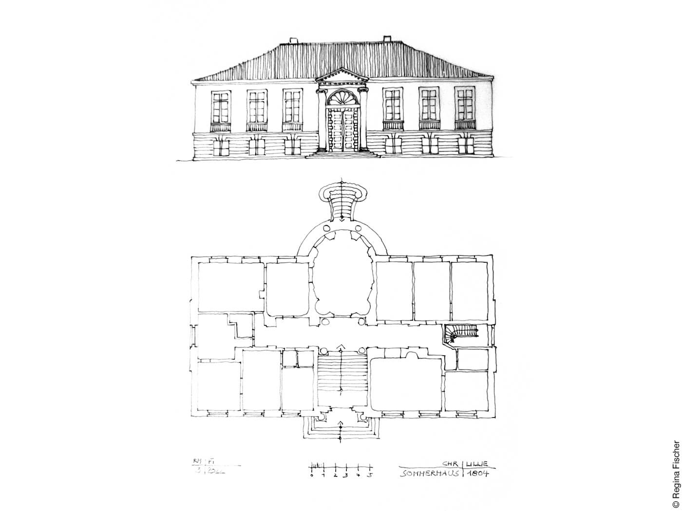 Der klassizistische Stil kann mich immer wieder begeistern. Eins der schönsten Bauwerke steht vor den Stadttoren von Lübeck. Als Sommerhaus wurde es von Architekt Christian Lillie 1804 in einem 3.280 Quadratmeter großen Park errichtet. Das rechteckige Gebäude ist eingeschossig mit hohem Sockelgeschoss und flach geneigtem Mansarddach.