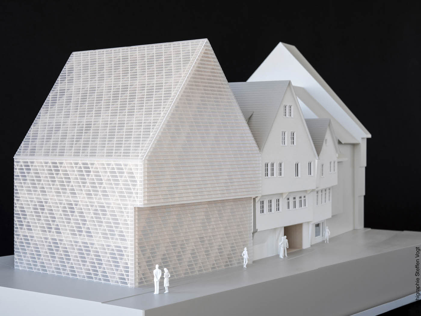 Den spektakulären Entwurf von Wulf Architekten für die historische Oberamteistraße in Reutlingen verdeutlicht ein Schnittmodell. (Klicken für Blick hinein!)