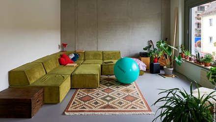 Es ist verschachtelt und von mäandernden Balkonen und Fluren durchwebt, gleich am Eingang liegt ein großer Gemeinschaftsraum. Im Keller gibt es Platz zum Musikmachen und eine Werkstatt, weiter oben drei „Jokerräume“, die wechselnden Zwecken dienen – momentan beherbergen zwei von ihnen ukrainische Flüchtlingsfamilien. Respektable 13 Prozent beträgt der Anteil der Gemeinschaftsflächen im Haus.