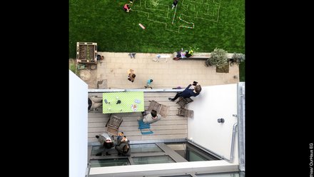 Die meisten Wohnungen erstrecken sich über mehrere Stockwerke. 24 Erwachsene und 20 Kinder verteilen sich so raffiniert über jeden Winkel, verbunden über ebenso individuelle interne Treppen und Splitlevel-Lösungen. Heiztechnisch hängt das Gebäude am Fernwärmenetz, erzeugt auf dem Dach aber auch eigene Energie. Das 2,84 Millionen Euro teure (KG 3+4) Gebäude mit 1.365 Quadratmetern vermietbarer Fläche kam ohne öffentliche Fördermittel aus.