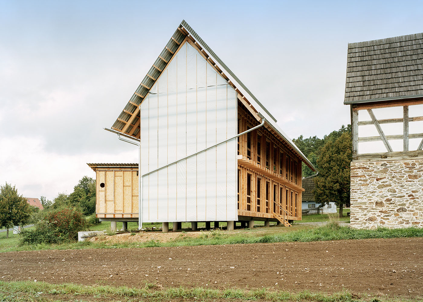 Er ersetzt das abgebrannte Hauptgebäude. Dazu schließt der Bau den historischen Vierseithof und greift vordergründig die Form des alten Bauernhauses auf. Allerdings ist er im Unterschied zum Vorgänger aufgeständert. Die für landwirtschaftliche Gebäude typischen Erweiterungsbauten stülpen sich nun als skurril-skulpturale Raumtaschen nach draußen.