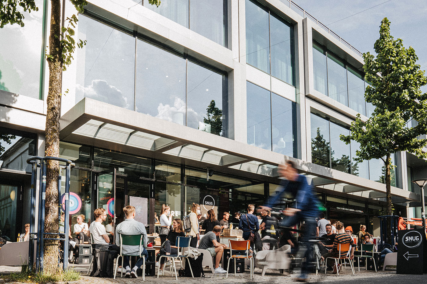 Kern des Betreiberkonzepts und der umgestalteten Immobilie ist das CORE, eine Kombination aus Markthalle mit Gastronomie, Catering-Küche und Eventbereichen im Erdgeschoss mit Co-Working und Meetingräumen in der ersten Etage. Mit rund 3.500 Quadratmetern nimmt das CORE nur knapp ein Viertel der Gesamtfläche ein. Darüber befinden sich ein Hotel, ein Fitnessstudio und Wohnungen. Weitere Einzelhändler und eine Bank mit Besucherzentrum zählen ebenfalls zu den Mietern. Auch hier also ein Mixed-Use-Ansatz.