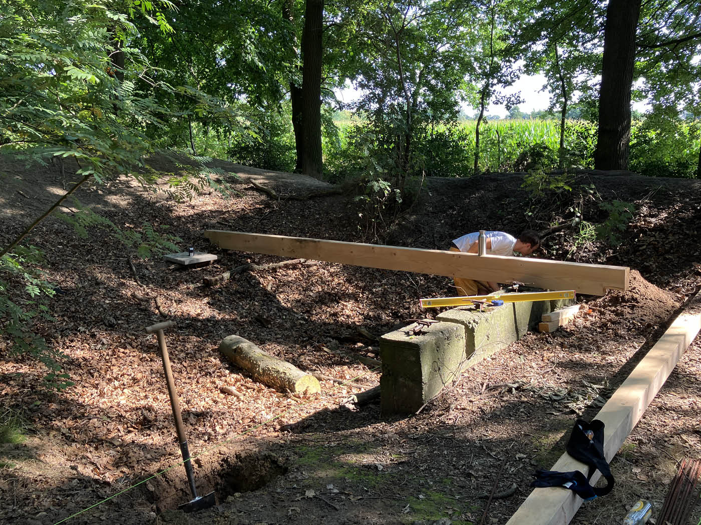 Die Aufgabe, die ich mit einer Freundin zu meistern hatte, war eigentlich ganz einfach: Die Kuhle einer alten Schießanlage musste mit einem Podest abgedeckt werden. Während des Festivals konnten 30 oder mehr Leute auf dem Podest tanzen. Zumal es wohl stehenbleiben darf, sollte die Konstruktion möglichst dauerhaft sein. Nichtsdestotrotz ging es nur um ein Podest für eine dreitägige Party.
