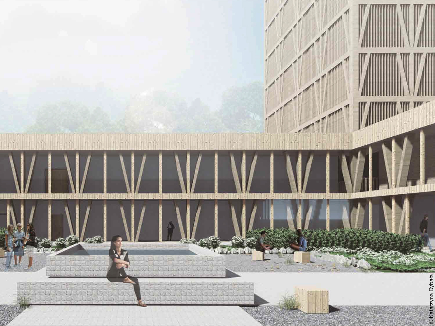 Die Schnittstelle dreier Pilgerwege nach Santiago de Compostela in der niederschlesischen Stadt Lubań nahm Katarzyna Dybała von der Silesian University of Technology zum Anlass, ein Pilgerheim für diesen Ort zu entwerfen. Die hölzerne Struktur, architektonisch inspiriert vom lokaltypischen Oberlausitzer Haus, dominiert das Erscheinungsbild. Innenräumlich lebt das Gebäude von einem Licht- und Schattenspiel. Insgesamt, so die Award-Jury, eine „ausgewogene, funktionale und asketische Architektur“, die ein einladendes Angebot für eine temporäre Behausung schafft. (Weitere Bilder zum Projekt in der Galerie)