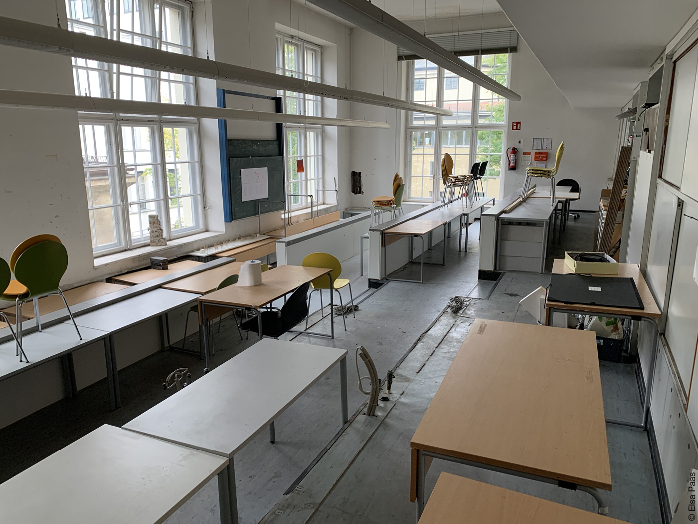 Das diesjährige Semesterprojekt eines Kommilitonen von mir tat genau das – ungenutzte Chancen entdecken und unsere Profession in den eigenen vier Wänden anwenden. Ein ehemals als Vorlesungssaal genutzter Raum an der TU München durfte aufgrund von fehlenden Absturzsicherungen so nicht weitergenutzt werden. Die Studierenden erkannten das unausgeschöpfte Potenzial und bauten den seit einem Semester leerstehenden Raum unter dem Motto „Campus kann mehr“ um.