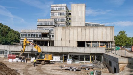 Es war eine jahrelange Gratwanderung, zu eruieren, ob ein Abriss samt Neubau auch unter CO2-Aspekten auf 50 Jahre gesehen günstiger ist als eine Sanierung samt Erweiterung. Objekt der Bewertung war das 1976 bezogene Esslinger Landratsamt, das zu klein geworden war. Aber auch energetisch und funktional war das achtgeschossige Gebäude am Neckarufer nicht mehr zeitgemäß.