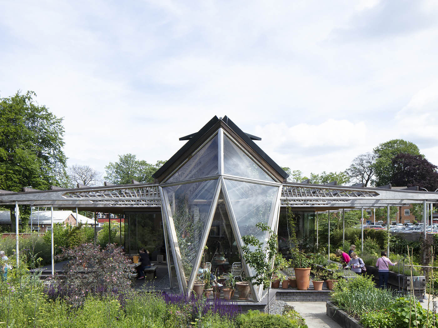 Der von Kim Wilkie entworfene Garten zieht Wildtiere an, was Betrachtern die Natur nicht nur optisch nahe bringt, sondern auch ein Gefühl der Ruhe stärkt. Das Zentrum liegt inmitten eines kleinen Waldgebietes. Die Flügel des Entwurfs schützen die Sitzplätze im Freien, sodass die Besucher das ganze Jahr über draußen sitzen können.