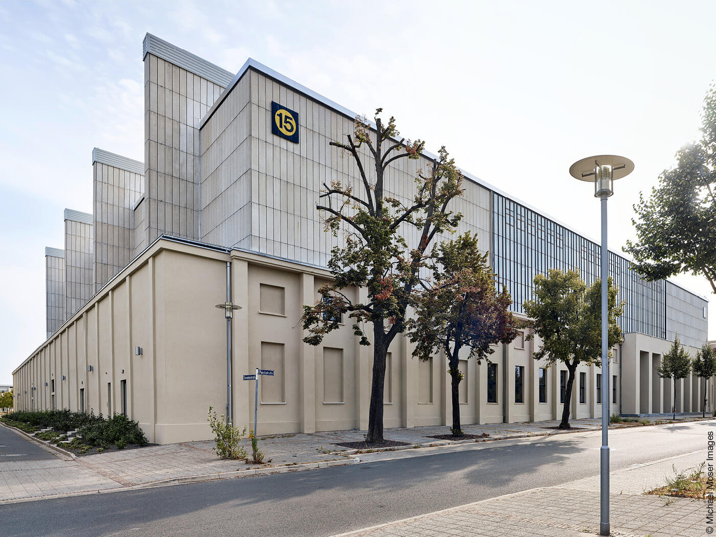 Außerhalb von Fachkreisen dürfte wenig bekannt sein, dass Halle 15 zu ihrer Bauzeit ein echter Superlativ war. Die Dachkonstruktion aus sieben Zweigelenk-Fachwerkrahmen wurde in wenigen Monaten durch das Büro Crämer & Petschler innerhalb der Außenmauern einer bereits bestehenden Halle aus dem Jahr 1923 errichtet. Mit einer Stützenweite von knapp 100 Metern stellte der Bau einen weltweiten Spannweitenrekord auf, als er im Frühjahr 1928 eröffnete. Die strenge Ingenieur-Ästhetik mit den langen Oberlichtern und den schmalen, vertikalen Fassadenplatten aus Beton beeindruckt bis heute, doch der Kontrast zum fünf Jahre älteren Sockelbereich mit seinen expressionistischen Fenstern dürfte die Zeitgenossen vermutlich irritiert haben.