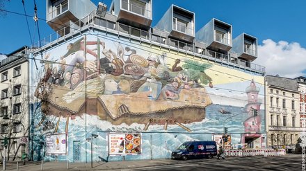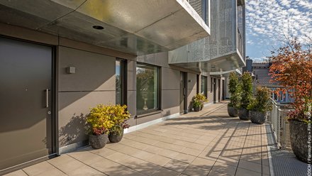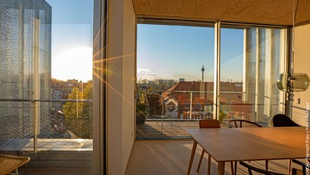 Zur Finanzierung des Projektes (Gesamtumfang circa 4,5 Millionen Euro) stockte er den Bunker mit fünf hochwertigen Penthousewohnungen auf, jeweils doppelstöckige Kuben mit verzinkten Stahlfassaden und großzügigen Terrassen, von denen sich die Stadt fast im 360-Grad-Radius überblicken lässt. Zwei davon sind bereits verkauft (für circa 15.000 Euro pro Quadratmeter).
