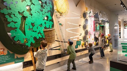 Kein neues Logistik-Center ist hier entstanden, sondern eine ganze „Rapunzel-Welt“, ein lebendiges Museum, das mit interaktiven Stationen zu Bio-Anbau und Fair Trade informiert (Austellungplanung von Atelier Markgraph aus Frankfurt am Main, Foto unten), mit einer eigenen Kaffeerösterei und einer eigenen Bäckerei aufwartet und mit Yoga- und Kochstudio unterhaltsam in seine Bio-Welt einführt.