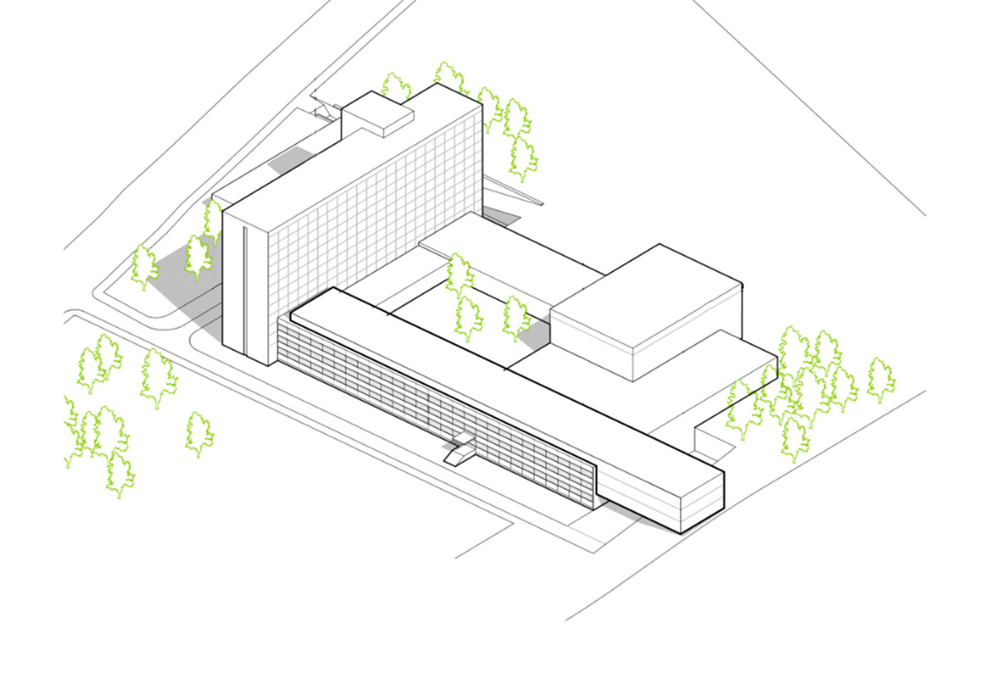 Erst während der Sanierungsplanung wurde das Denkmalamt auf den Bau des Münchner Architekten Hans-Busso von Busse aus dem Jahr 1969 aufmerksam und stellte es unter Schutz – wegen seiner Anlehnung an den Strukturalismus, seiner zeittypischen Bauweise aus Kalksandstein und der bestens erhaltenen Innenräume.