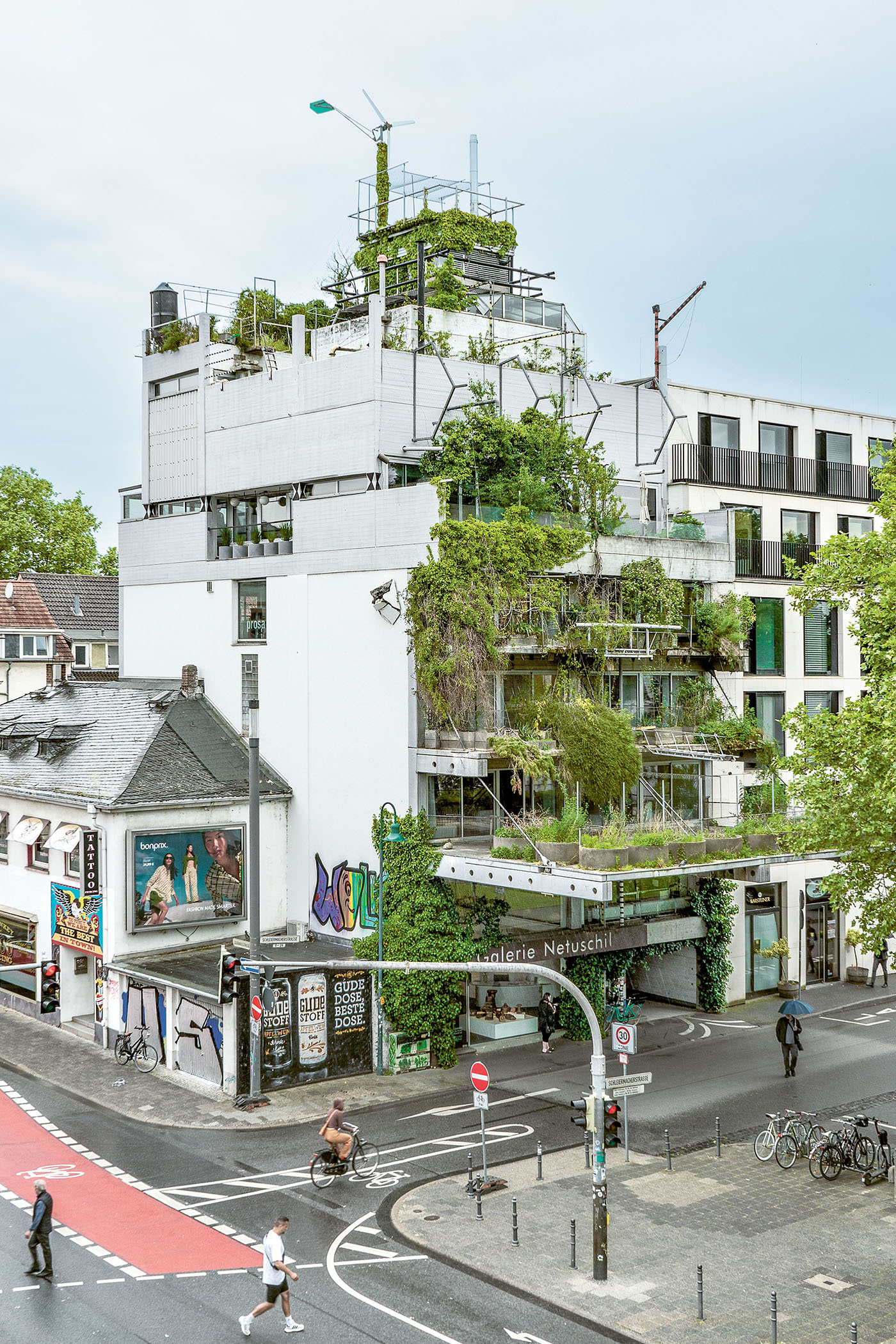 Das Baumhaus in Darmstadt schützt sich seit 1972 mit viel Bewuchs gegen Lärm, schlechte Luft und urbane Hitzeinseln.