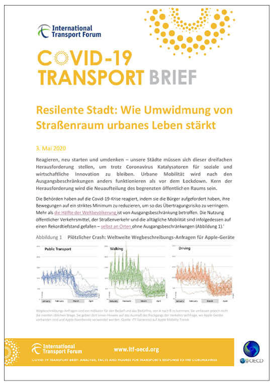 Wie reagiert die Verkehrswelt andernorts auf die Corona-Krise? Einen guten Überblick gibt die deutsche Überssetzung des 12-seitigen „Covid-19 Transport Brief“ des International Transport Forum.