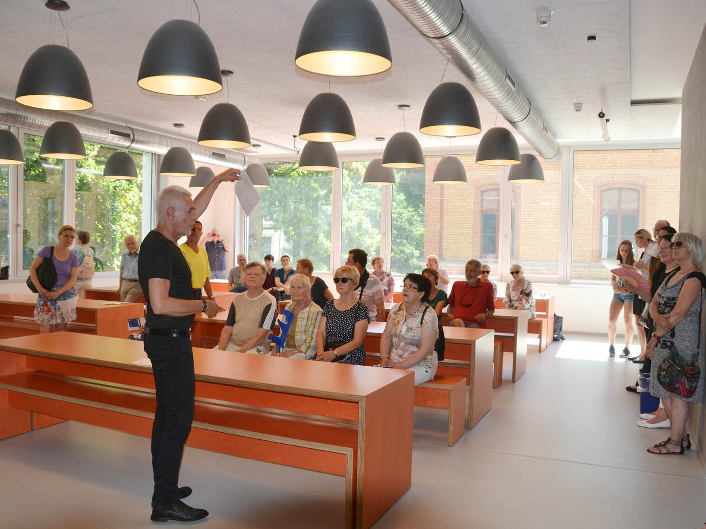 Zu Fuß, mit dem Bus oder mit dem Rad kamen zahlreiche Architekturinteressierte am 25. Juni dann etwa in Baden-Württemberg zu den präsentierten Projekten. Bauen und Sanieren bestehender Gebäude lautete der Schwerpunkt des diesjährigen Aktionstages, „BESTÄNDig BAUen” das Motto dazu. Auf dem Programm standen dabei zahlreiche Projekte des herausragenden Stuttgarter Architekten Günter Behnisch, der dieses Jahr 100 Jahre alt geworden wäre, darunter seine Schul- und Hochschulbauten in Göppingen, Dettingen, Ulm und Freiburg. Ein Kino in Baden-Baden zeigte den Film „Häuser machen Menschen. Der Architekt Günter Behnisch“, den Klaus Doldinger 1994 für den NDR gedreht hatte. Dieser lief auch im Rathaus Heidenheim, zusammen mit drei weiteren Filmen. Dort wurden zudem die Ergebnisse des gerade entschiedenen städtebaulichen Realisierungswettbewerbs zum Rathausquartier kommentiert. Obwohl der Tag der Architektur nach langer Pandemie-Zurückhaltung mit vielen Parallelveranstaltungen konkurrieren musste, waren die Angebote oft ausgebucht.