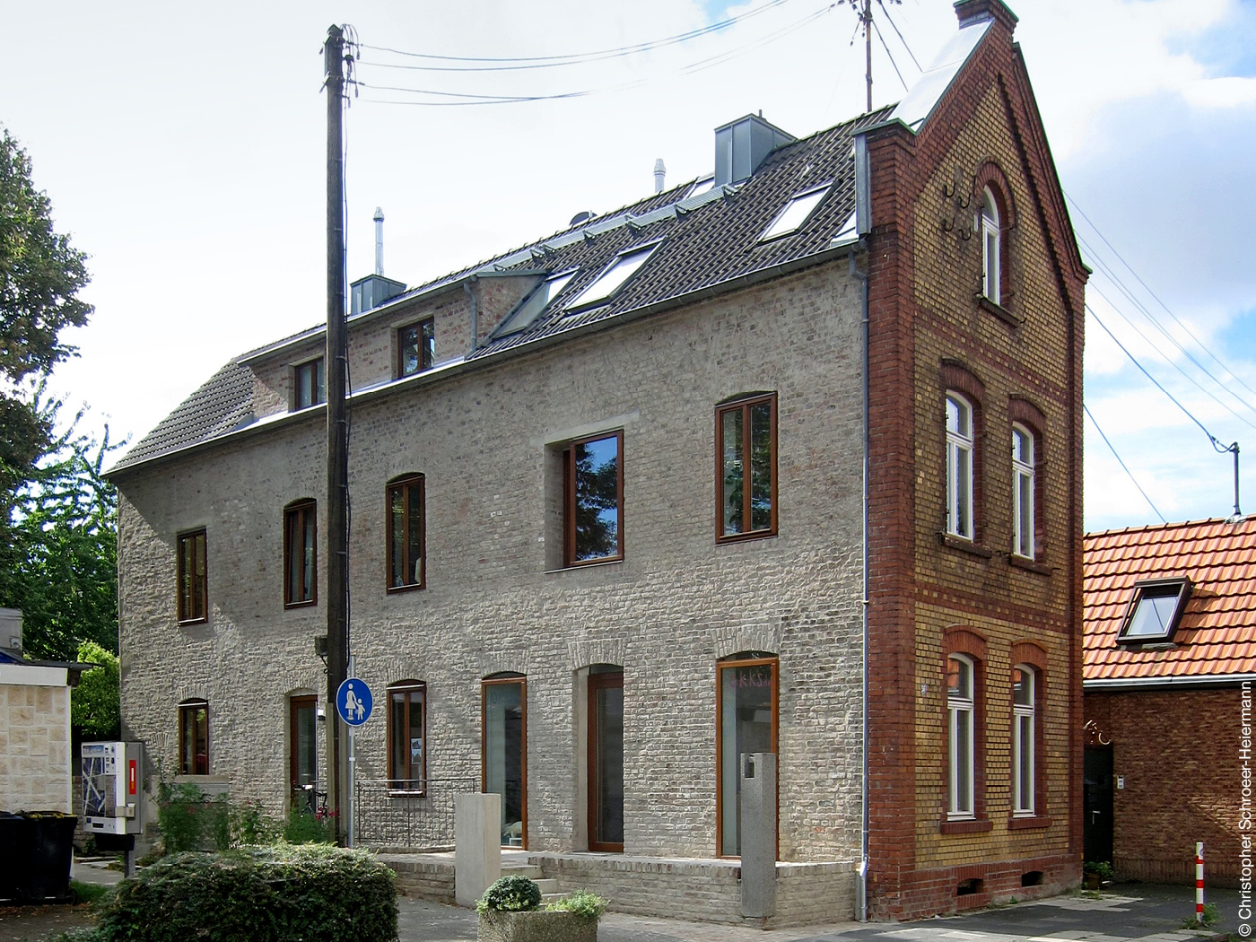 Wie lässt sich ein zweigeschossiges, sehr ungünstig geschnittenes Gebäude mit einer Tiefe von knapp sechs Metern und einer rund 18 Meter langen längsseitigen Brandwand zum Nachbarn so gestalten, dass jedes Zimmer möglichst zu jeder Tageszeit ausreichend Zugang zu natürlichem Licht hat? Diese Frage war für den Kölner Architekten Christopher Schroeer-Heiermann Ausgangspunkt seiner Planungen bei der Umgestaltung eines 3-Parteien-Wohnhauses im Stadtteil Sürth.