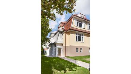 Kooperativ ging es auch schon bei der Bürogründung zu. Den Anfang machte das Hölzel-Haus: Das 1905 errichtete Wohnhaus des Malers Adolf Hölzel wurde von Sarah Behrens und Ina Westheiden saniert, barrierefrei ausgebaut und erweitert. Für das Projekt sollte ursprünglich ein Architekturwettbewerb ausgelobt werden, der sich speziell an Absolventen der Stuttgarter Kunstakademie richtete.