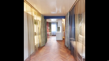 Die äußerste Vorhangschicht dient als Namensgeber für das Apartment, da die Architektinnen den vom britischen Arts-and-Crafts-Künstler William Morris entworfenen Stoff Willow Bough verwendeten. So wird die Wohnung zum spielerischen Raumwunder, mit dem Sarah Behrens und Ina Westheiden auch einen Gegenentwurf zur Funktionstrennung der Moderne entwickeln wollten.