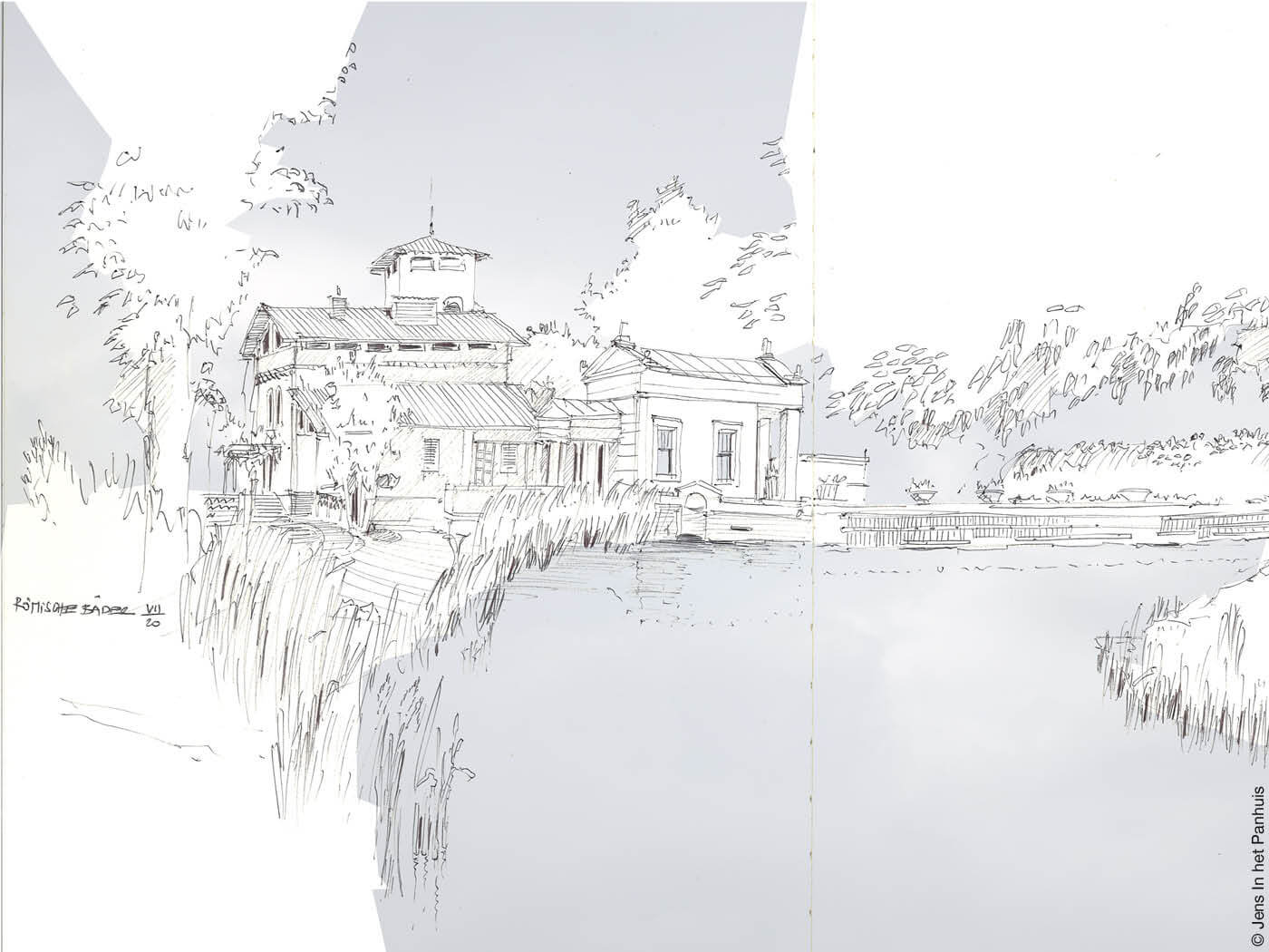 Die Römischen Bäder sind eine Collage des damals nur für wenige Privilegierte erreichbaren Südens, mit südländischem Gemüse und üppigem Pflanzenschmuck. Sie wecken Assoziationen an ein (2020 für die meisten unerreichbares) ideales Italien.
