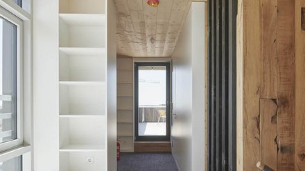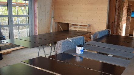 Detailausbildung: Die Detaillierung von Bauteilen und Verbindungen ist komplexer, da Standarddetails häufig nicht verwendet werden können. Insbesondere Dach- und Badabdichtungen werden in der Regel mittels Verklebungen, Flüssigabdichtungen oder zementärer Abdichtung sichergestellt. Beschichtungen wie Anstriche und Putzsysteme sind beim konsequent zirkulären Bauen meist nicht anwendbar. Genauso wenig sinnvoll sind Verbundstoffe. Wirklich zirkuläre Lösungen wurden hierfür erst zum Teil gefunden.