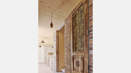 Die Ziegelsteine im Recyclinghaus Hannover (Architektur: cityförster) stammen von einer abgerissenen Scheune, die Tür aus einem alten Bauernhaus. © Olaf Mahlstedt / cityförster