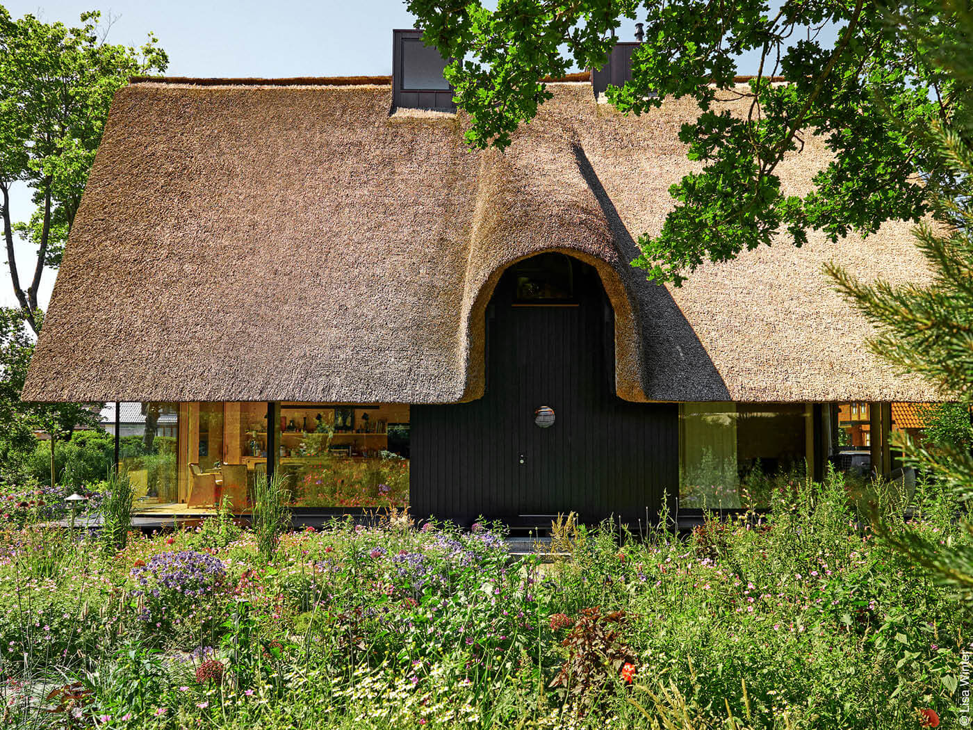 Seit einigen Jahren entstehen Häuser, die sich von der Betulichkeit „alter“ Formen lösen und einen freien Umgang mit dem Material Reet zeigen. Jenseits der stetig weiterlaufenden, um Traditionsbezüge bemühten Architekturen entwickeln sich nun auch ansehnliche Modernismen, die mit dem Material konstruktiv angemessen, formal aber explizit architekturbestimmt umgehen. Viele dieser kleinen und großen Häuser schöpfen ihre Aussagekraft in besonderem Maße aus dem Kontrast zwischen einem traditionellen, mit ländlichen Vergangenheitsbildern konnotierten Material, das nach wie vor für eine Verbindung mit dem Ort und der Region steht, und einer offenen, der Moderne zugewandten Gestaltung.