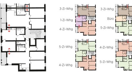 Die Grundrisse der einzelnen Wohneinheiten sind genauso individuell, wie es die äußere Anmutung erwarten lässt, und ganz auf die Wünsche der künftigen Bewohner zugeschnitten. Die Architektin nennt zwei Beispiele: „In einer Wohnung ist eine spätere Trennung möglich, falls ein Partner früher stirbt. Ein zweiter Zugang vom Treppenhaus ist vorbereitet, der Grundriss sieht eine Trennwand vor.