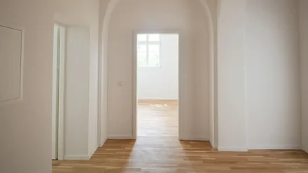 Ende l2023 schloss cubus plan mit dem ehemaligen Mannschaftsgebäude namens INFA1 den ersten Umbau ab. Das Team aus Architektinnen und Architekten transformierte die wuchtige, spätkaiserzeitliche Soldatenunterkunft mit hohem Mansarddach in 36 helle 2- bis 4-Zimmer-Wohnungen. Eine besondere Herausforderung war der Zuschnitt der Wohnungen in dem ehemals großzügig einhüftig organisierten Bau mit seinen streng gereihten Räumen, betont Architektin Itziar León. Die langen Flure mit ihren Schwibbögen integrierte cubus plan beim Umbau in die Wohnungen, wodurch insbesondere im Haupttrakt zweiseitig belichtete Wohnungen entstanden.