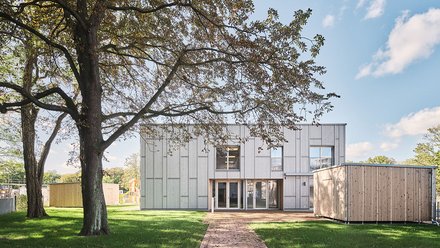 Im niedrigen Haus der Kita liegen die Frühbetreuung sowie ein Elterncafé. © Caspar Sessler