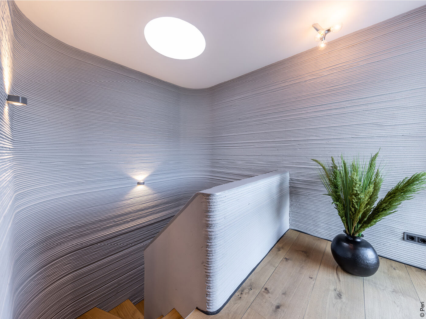 Ebenso wichtig war es, die Anforderungen im Zuge des Baugenehmigungsverfahrens zu erfüllen. Um die Sicherheit des Tragwerks zu gewährleisten, wurden Versuche zur Druck- und Biegezugfestigkeit durchgeführt. Im Vergleich zur üblichen Methode mittels kleinformatiger Prüfwürfel, hatte Peri zur Prüfung der statischen Eigenschaften eigens großformatige Wandelemente gedruckt. Außerdem fand unter anderem die Prüfung des Frost-Tau-Widerstands statt, um die Lebensdauer der Konstruktion zu bestimmen.