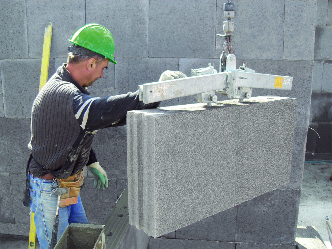 Kurze Lieferzeiten und überschaubare Transportwege vereinfachten den termingerechten Einbau. Aufgrund seiner Struktur liefert Leichtbeton zudem in Sachen Schallschutz gute Werte. So sieht die DIN 4109 beim Einsatz dieses Baustoffs im Vergleich zu anderen Mauerwerksgattungen einen Bonus von zwei Dezibel für das bewertete Schalldämm-Maß Rw vor. Mit Leichtbeton-Planelementen lässt sich bei einer Wanddicke von 20 Zentimetern ein Direktschalldämm-Maß (Rw) von 60,2 Dezibel erreichen, bei 17,5 Zentimetern eines von 58,5 Dezibel.