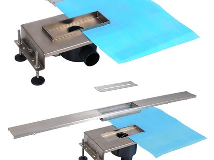 Duschrinnen und Ablauf mit Edelstahl-Gehäusen