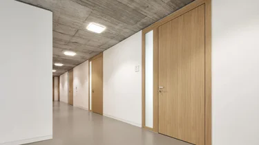Die Türelemente gibt es als ein- oder zweiflüglige Ausführung sowie als platzsparende Schiebetür ohne Bodenschwelle, wobei zwischen den Türblattstärken 42, 50 oder 70 Millimeter gewählt werden kann. Brandschutz wird in den Klassen T30 und T90 gewährleistet; Schallschutz mit Rw = 32, 37 und 42 Dezibel, auch Rauchschutz und Einbruchhemmung (RC2 und RC3) sind möglich.