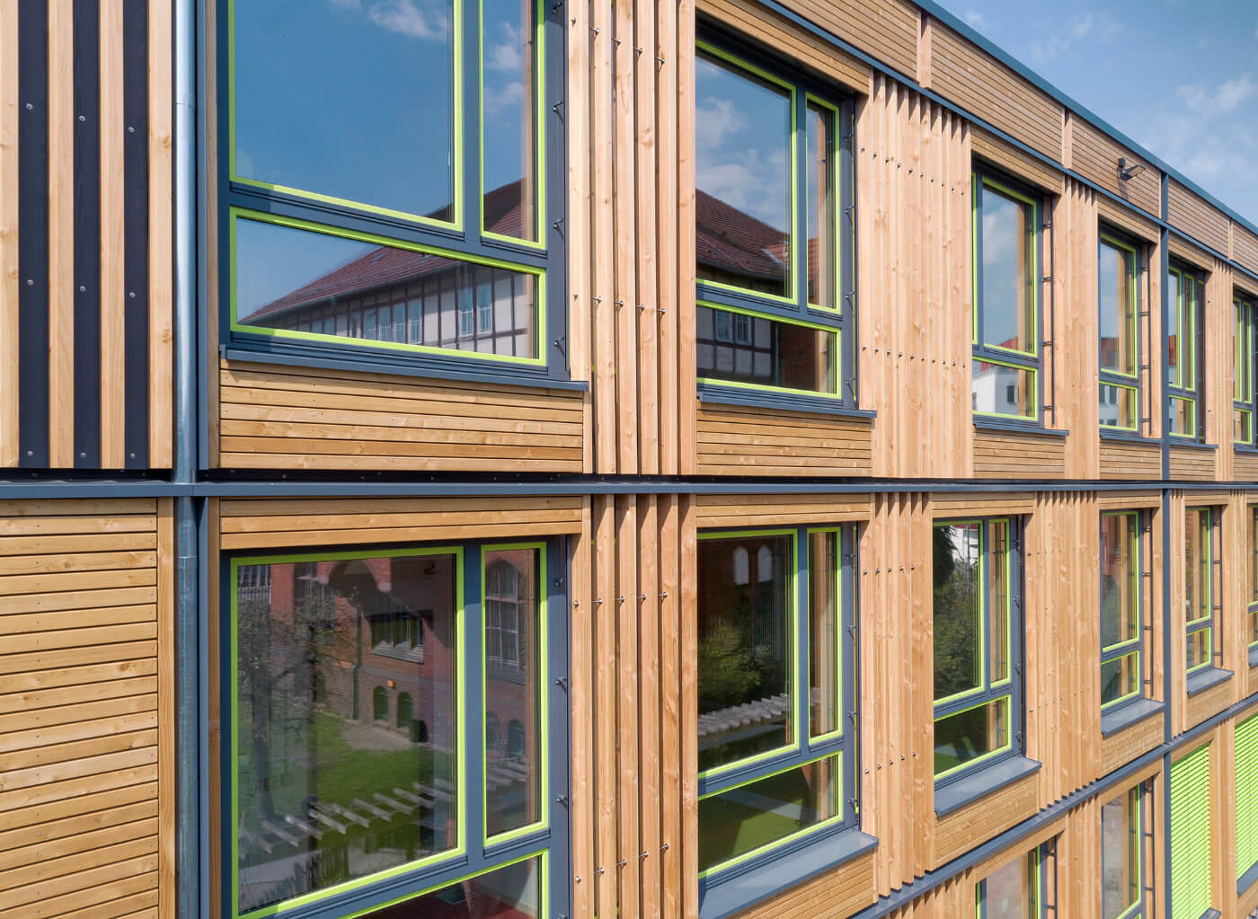 Ein ökologisch nachhaltiger und gleichermaßen architektonisch anspruchsvoller Schulneubau wurde gerade im Berliner Stadtteil Friedrichshain fertiggestellt. Die Hausburg-Grundschule mit internationaler Ausrichtung ist eine von 18 Grundschulen, in denen der Schwerpunkt von der ersten Klasse an auf dem Erlernen zweier gleichberechtigter Sprachen liegt. Für die Planung zeichneten Frank Ohlmann und Markus Hildebrand von NEMESIS Architekten in Berlin verantwortlich. Realisiert wurde der Neubau von der Firma Kleusberg.