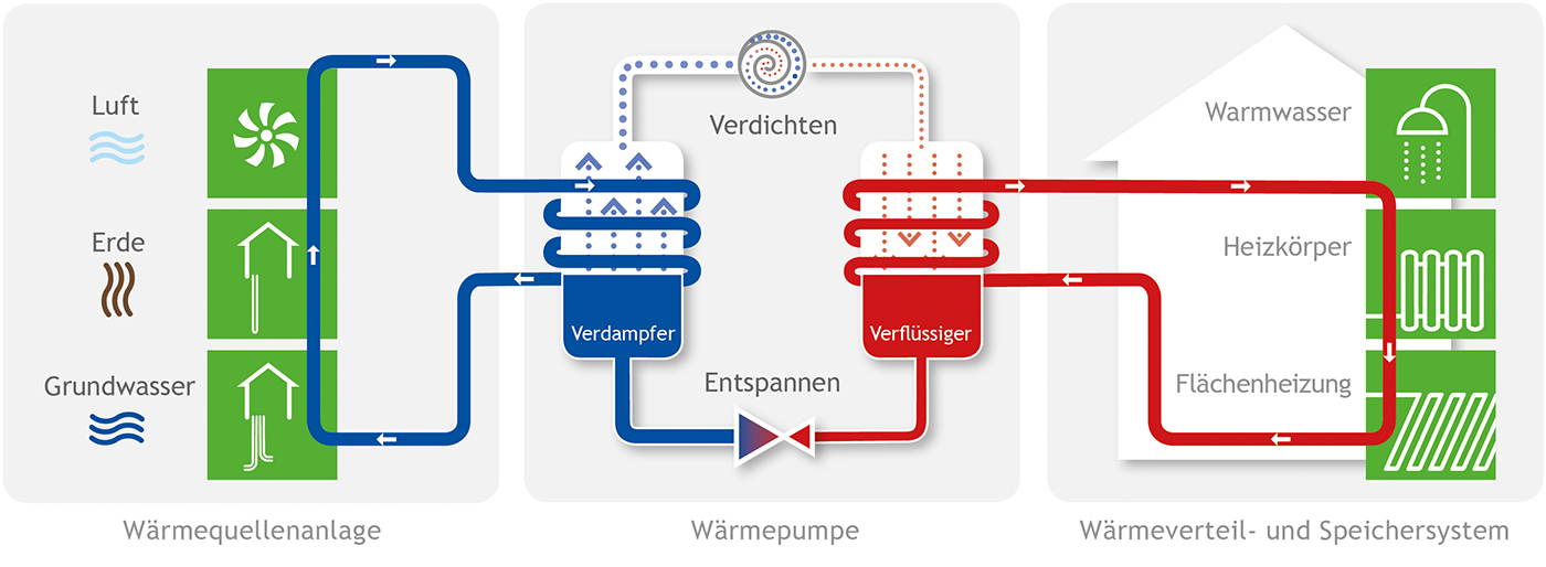 Elektrowärmepumpen können sowohl Neubauten als auch Bestandsgebäude umweltschonend und energieeffizient mit ausreichend Heizwärme versorgen.