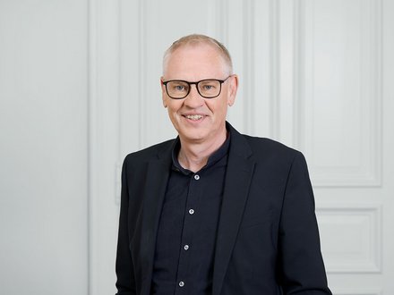 Porträt eines Mannes mit Brille vor neutralem Hintergrund