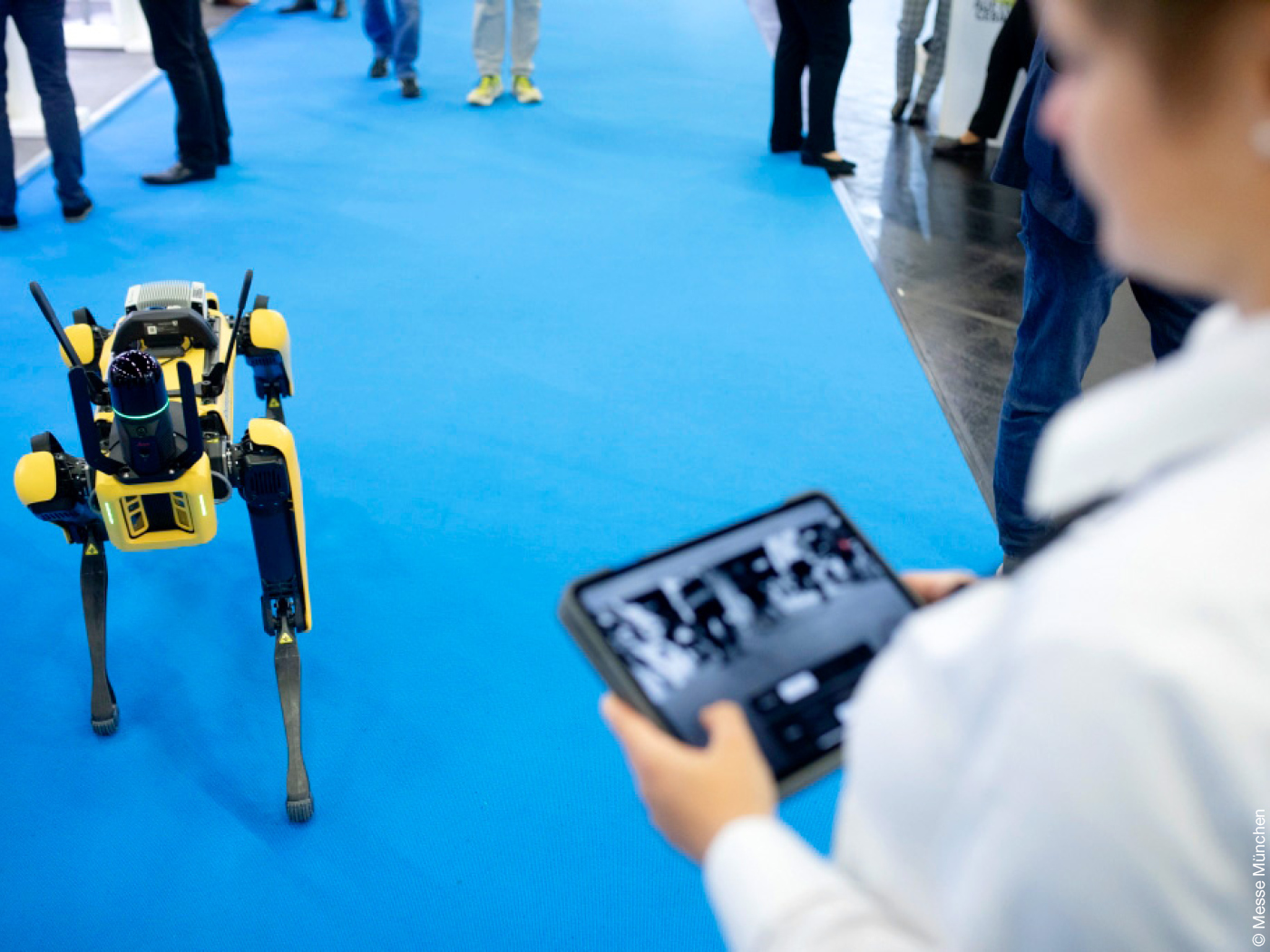Die Robotik war auf der digitalBAU ebenfalls vertreten. Drohnen und vor allem der von Boston Dynamics entwickelte Laufroboter „Spot“ sorgten für Aufmerksamkeit. Er wird von Leica Geosystems oder von Trimble als Trägersystem für 3D-Scanner genutzt und als Komplettlösung für die automatisierte geometrische und fotografische Bestandserfassung, Baufortschrittserfassung oder Qualitätssicherung angeboten.