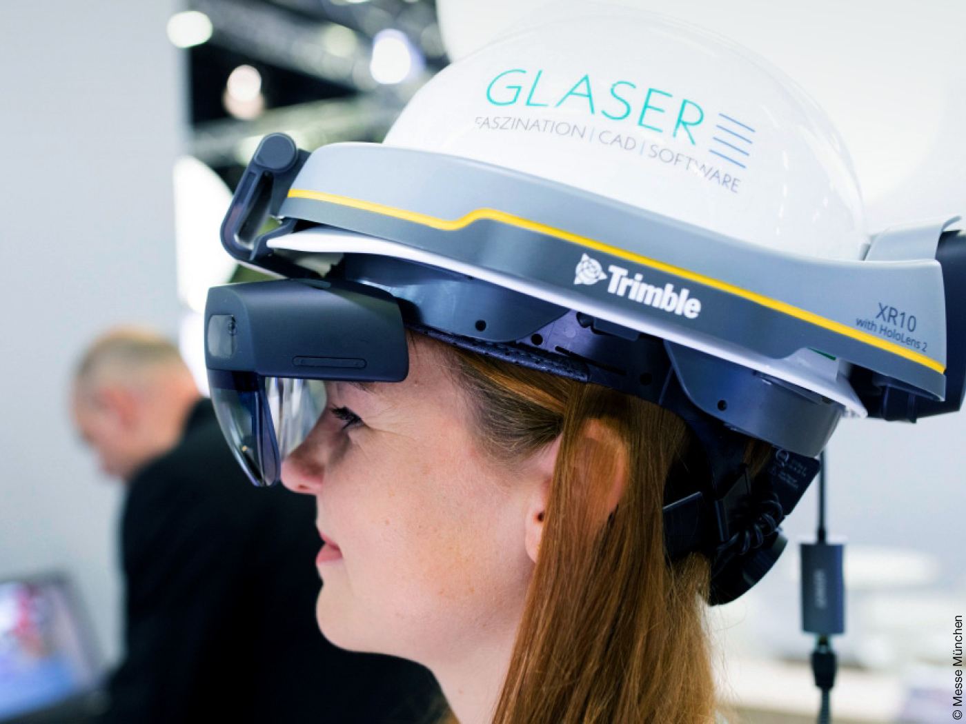 Premiere hatte auch der neue, kamerabestückte Helmaufsatz „Digibau 360“ für die Baufortschrittsdokumentation, Baustellen- und Mängelerfassung sowie virtuelle Baubegehungen. Er soll im Rahmen realer Baubegehungen die visuelle Erfassung der aktuellen Baustellensituation automatisieren.