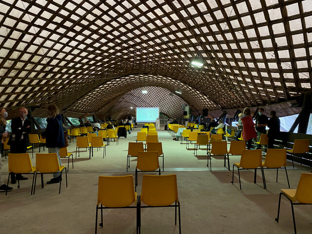 Cansu Aslan und Dennis Ewert, die frisch gewählten Vorsitzenden des jungen Vereins namens MOFA, Mannheims Ort für Architektur, luden also zur Auftaktveranstaltung in die Mannheimer Multihalle. Ein würdiger Ort, die Diskussion um Baukultur neu anzukurbeln und junge Köpfe mitreden zu lassen: Der Architekt Carlfried Mutschler hatte die Multihalle für die Bundesgartenschau 1975 entworfen und niemand geringeres als Frei Otto die gewölbte Gitterträger-Struktur dafür entwickelt.