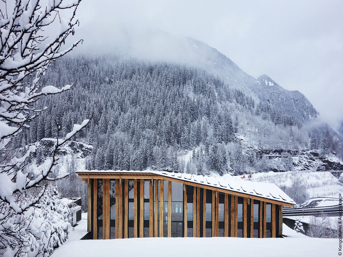 Hinzu kommen ein fünf Meter hoher Pavillon aus Aluminium und eine experimentelle Holzskulptur. Sie verdeutlichen Kumas Verständnis von Architektur als Lautmalerei (Onomatopoesie), die im Japanischen sehr ausgeprägt ist.