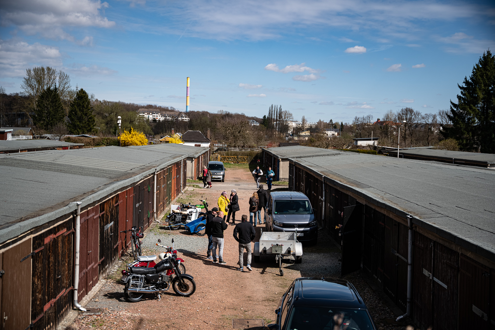 Der „Garagenparcours“ führt zu einer der ältesten Hochgaragen Deutschlands von 1928, in die Auto-Remise der Villa Esche (Henry van de Velde, 1902/03) sowie auf die typischen Garagenhöfe aus DDR-Zeiten, die im Alltag noch immer wichtige soziale Funktionen erfüllen. Sie öffnen sich für Kunstinstallationen, Ausstellungen oder Festivals.