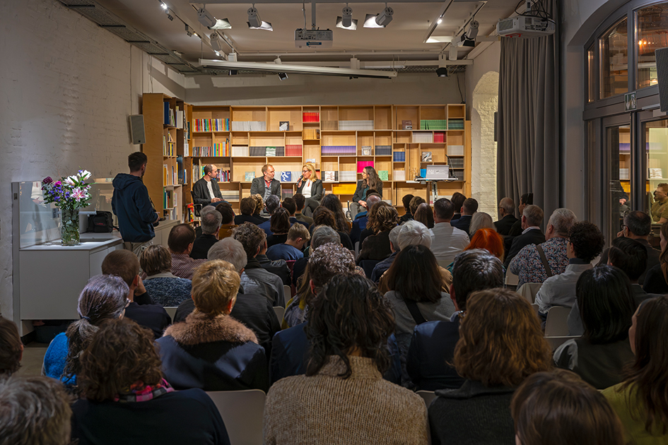 „Das Besondere an Genossenschaften ist, dass ihr oberstes Ziel nicht die Erwirtschaftung von Profit, sondern die Förderung ihrer Mitglieder ist“, sagte Barbara König, Geschäftsführerin vom Genossenschaftsforum e.V. bei der Preisverleihung im Gespräch. Auf dem Podium (v. l. n. r.): Lorenz Hahnheiser, Jens Kahl, Kerstin Kirsch und Barbara König