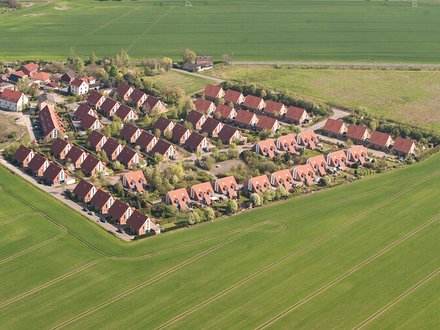 Luftaufnahme des Tempelhofer Feldes mit umliegender Stadt.