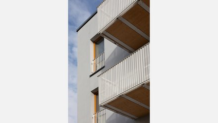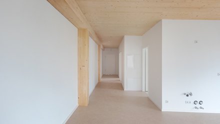 Das Holzbauquartier mit 72 Wohnungen für eine junge Genossenschaft ist ein Teilprojekt der Quartiersentwicklung „Buckower Felder“. Ziel ist, bezahlbaren Wohnraum mit 30 % Mietpreisbindung zu schaffen, Gemeinschaft zu fördern, Menschen mit Behinderung zu integrieren und eine nachhaltige, emissionsarme Bauweise mit Holzhybridgebäuden umzusetzen. Drei drei- bzw. viergeschossige Häuser gruppieren sich als Ensemble um einen Innenhof. Sie sind modular aus zwei oder drei Holzbaukörpern aufgebaut und jeweils über ein zentrales Treppenhaus erschlossen. Gemeinschaftsräume im Erdgeschoss, Waschräume und Terrassen fördern das nachbarschaftliche Zusammenleben. Die Wohnhäuser wurden als Holzhybridbauten mit hoher Energieeffizienz im KfW-40-Standard realisiert. Die Energieversorgung erfolgt über ein Niedrigtemperaturnetz mit Abwasserwärmerückgewinnung, ergänzt durch Photovoltaikanlagen sowie begrünte Dächer und Fassaden zur Regenwasserrückhaltung und sommerlichen Kühlung.