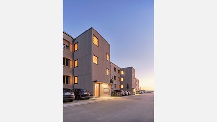 Erschwinglicher Wohnraum im Plusenergiehaus: 54 Wohnungen in innovativer Holzbauweise – barrierefrei, gemeinschaftlich und 2024 ausgezeichnet.