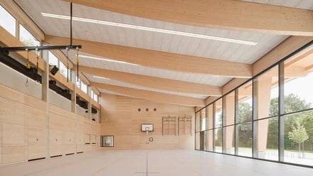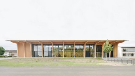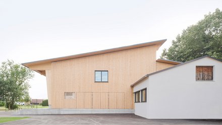 Die Mehrzweckhalle in Ingerkingen wurde 1964 als Turnhalle für die benachbarte Schule errichtet und im Laufe der Jahrzehnte mehrfach umgebaut. Sie ist Teil eines kommunalen Ensembles mit Schule, Feuerwehr und Musikerheim und fungiert als zentraler Ort für Sport, Veranstaltungen und das Vereinsleben. Im Wettbewerbsverfahren ließ die Gemeinde offen, ob der Bestand erhalten oder durch einen Neubau ersetzt werden sollte. Das Atelier Kaiser Shen setzte sich mit einem Entwurf durch, der auf maximalen Bestandserhalt und Weiterbauen setzte.