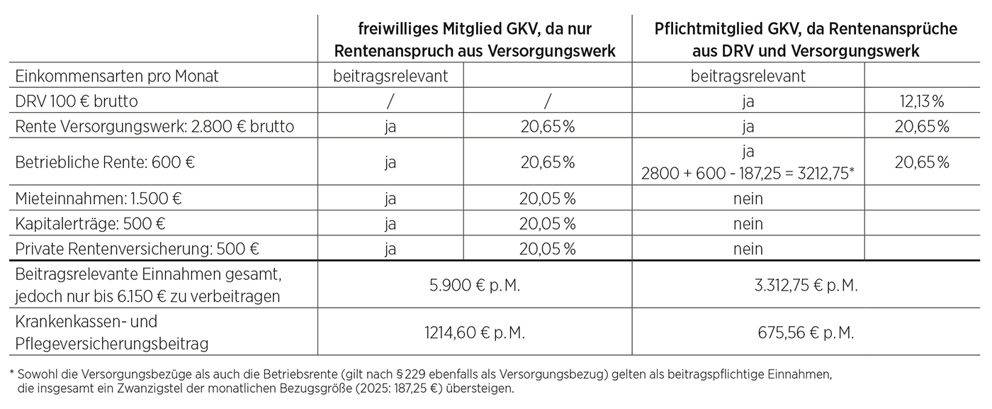 Dies bedeutet, dass nicht nur die Versorgungswerksrente voll zu verbeitragen ist, sondern auch sämtliche weiteren Einkünfte, wie beispielsweise